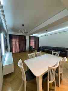 Сдается 3-комнатная квартира площадью 180 м² на 5-м этаже престижного здания в Белом Городе. Отличный ремонт, квартира полностью обставлена мебелью и техникой. После ремонта никто не жил. Газ, вода и свет постоянно. Система отопления — комби.