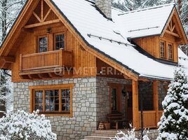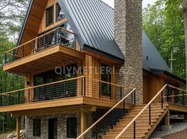 Konstruksiya yığılandan sonra profnastil vurulur, yada çerepica, içinə daş yunu (10 sm, 35-50 sixlıqda), iç tərəfdəndə taxta ilə obşivka olunur. Evin polu istəyə görə metlax ya da laminat ola bilər.Divar-alçıpan, üstü