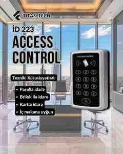 Access control Brelok (maqnit açar), şifrə və İD kart ilə açmaqa imkan verir Qapı elektron ya maqnit kilidi ilə inteqrasiya edilə bilər.