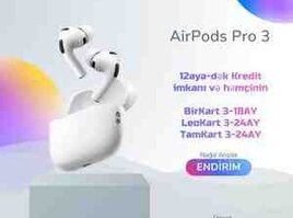 10 Azn AirPods Pro 3 Əsas xüsusiyyətlər; •Aktif səs-küyün aradan qaldırılması (ANC) — əvvəlki nəsilə nisbətən iki dəfə daha təsirlidir.  •Yeni qulaq başlıqları — 5 ölçüdə, o cümlədən XXS.  •Suya və toza dayanıqlılıq — IP57