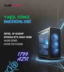 1699 Azn 14-cü Nəsil Zəmanət VerilirYeni Keysde Ana Kart : Asus Prime B760 - Plus D4 Cpu : Intel Core TM i3-14100F up 4,7 GHZ Ram : 16GB RAM 3200mhz ( T-Force ) SSD : 500GB Nvme Qida Bloku 650w 80-p Bronze MSI Nvidia - RTX 3060