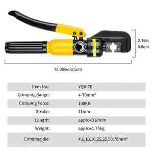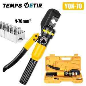 YQK-70 Желтый ручной гидравлический клещи комплект с 4/6/10/16/25/35/50/70 мм² шестигранный обжимной пресс-форма, пластиковый ящик для инструментов YQK-70 Регулируемый клапан возврата масла Хромированные интегрированные ручные гидравлические клещи обжимной провод для электриков