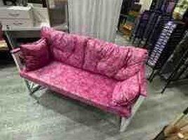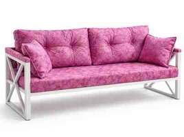 Möhkəm metal (dəmir) karkas üzərində qurulub. Ağ rəngli konstruksiya və yumşaq, qalın süngərli çəhrayı premium parça ilə hazırlanıb. Həm rahat, həm də dekorativ görünüşə malikdir.