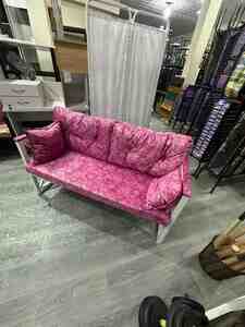 Restoran üçün Dəmir Ayaqlı Divan – Çəhrayı Parça | Sifarişlə Hazırlanır