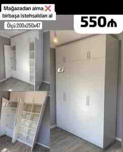 34 AznHün 175 en 50 yandan 35 sm Malın tipi: Dolablar və komodlar Malın növü: Dolablar Yeni: Bəli Çatdırılma: Bəli