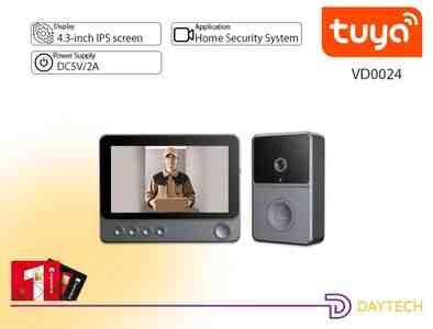 VD0024 - ev, ofis, villa və mənzillər üçün nəzərdə tutulmuş, 4.3 düymlük IPS rəngli ekranla təchiz olunmuş simsiz ağıllı video qapı zəngidir (video interkom). 640×480 çözünürlüklü kamera və 70° baxış bucağı sayəsində qapı önündəki ziyarətçiləri aydın şəkildə görmək mümkündür.