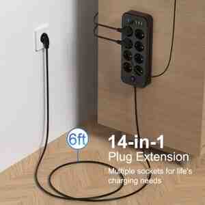 Evinizdə və ya ofisinizdə naqil dağınıqlığından və kifayət qədər enerji çıxışı olmamasından bezmisiniz? Bu 14-in-1 çoxfunksiyalı güc uzadıcı bütün enerji ehtiyaclarınızı qarşılamaq üçün ideal həll yoludur!