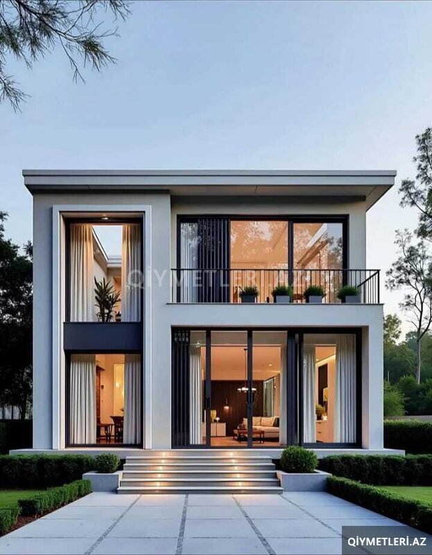 - Panoramik pəncərələr və geniş şüşələnmə: təbii işıq, həyətə açılan sürgülü qapılar