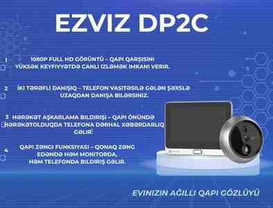 EZVIZ DP2C, EZVIZ qapı gözlüyü, smart qapı kamera, video door viewer, 1080p kamera, 155 dərəcə kamera, PIR sensor kamera, ağıllı qapı zəngi, qapı zəngi kamera, iki tərəfli danışıq kamera, wifi qapı kamera, ev təhlükəsizlik sistemi, IP kamera, 4.3 ekranlı qapı monitoru, gecə görmə kamera, batareyalı qapı kamera, microSD dəstəkli kamera, ev üçün kamera sistemi, видеоглазок, умный видеоглазок, дверной видеоглазок, камера глазок, видеодомофон, умный дверной звонок, WiFi видеоглазок, камера на дверь, 1080p камера, 155° обзор, PIR датчик движения, двусторонняя связь, разговор через камеру, ночное видение, инфракрасная камера, 4.3 дюйма экран, беспроводной дверной звонок, батарейная камера, камера с аккумулятором 4600 мАч, microSD до 512 ГБ, система безопасности дома, IP камера дверная