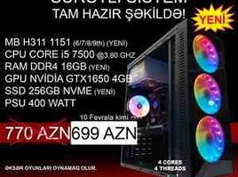 Oyun üçün DDR4 Masaüstü Kompüter. Videokart və Qida Blokundan başqa bütün detallar yepyenidir. Videokart əla vəziyyətdədir. Oyunda qızmır. Qida bloku original 400Watt-dır. İstənilən oyunu oynamaq olur. Soyutma sistemi mükəmməldir.