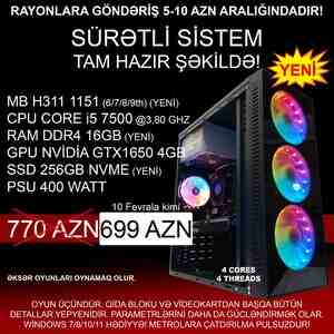 keys sistem bloku masaüstü kompüter ofis ana plata motherboard matplata ddr4 h310 h311 cpu cup işləmci işlemci prosessor proçessor processor процессор intel core i 5 core i5 7500 i5-7500 socket lga ram operativ yaddaş əməli yaddaş оперативный 16gb 16 gb 256gb 256 gb nvme ssd ssd gtx gtx1650 1650 4gb 4 gb qida bloku psu 400 watt 400watt windows7 windows 7 windows10 windows 10 windows11 windows 11
