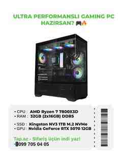 ryzen 7 7800x3d gaming pc, rtx 5070 gaming pc, gaming pc baku, oyun kompüteri bakı, gaming komputer satışı, high end gaming pc, ddr5 gaming pc, rgb gaming pc, rtx gaming pc, gamer pc bakı