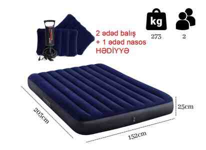 Komplektə 2 ədəd balış ( intex 68672) və mexaniki nasos (68612) daxildir