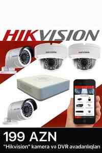 235 Azn Hikvision 4lü Hibrid analoq kamera dəsti ilə ailənizin və mülkünüzün təhlükəsizliyi sizin kontrolunuzda olsun! - 4 ədəd Hikvision DS-2CE16D0T-LPFS Turbo HD kamera 1 ədəd 4 kanallı Hikvision DS-7104HGHI-K1 DVR 500GB