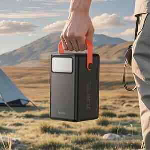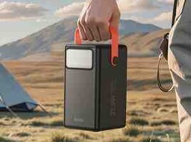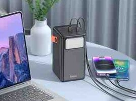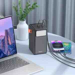 Hoco J142 Üstün, güc bankı, 100000mAh, iki portlu Type-C girişi, tək Type-C və 6 × USB-A port çıxışları, LED lampa, LED rəqəmsal displey, sürətli doldurma protokollarını dəstəkləyir.
