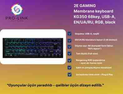 2E GAMING KG350, 2E KG350, 2E membran klaviatura, RGB klaviatura, 68 düyməli klaviatura, kompakt klaviatura, oyun klaviaturası, USB-A klaviatura, EN/UA/RU klaviatura, multimedia düyməli klaviatura, erqonomik klaviatura, RGB işıqlı klaviatura, oyun üçün klaviatura, PC klaviatura, noutbuk üçün klaviatura, Plug and Play klaviatura, uzunömürlü klaviatura, yüksək keyfiyyətli klaviatura, kompüter aksesuarları, 2E GAMING məhsulları, 2E Azərbaycanda, oyun və iş üçün klaviatura, sadə və erqonomik dizayn, RGB effekti, ofis və ev üçün klaviatura, kompakt gaming klaviatura, yüksək performans klaviatura.