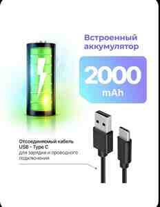 Отключаемый кабель с разъемом Type С - Возможно проводное подключение, а также зарядка встроенного аккумулятора через отсоединяемый кабель USB - TYPE C