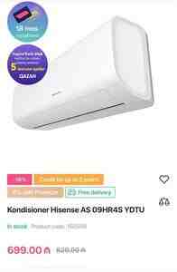 699 Azn Hann kondisioneri(2023 )modeli Yeni model 9000 btu (25-30 kv)450 AZN 12000 btu(40-45 kv)560 AZN 18000 btu(50-60 kv)750 AZN 24000 btu (70-90 kv)920 AZN 30000 btu (100-120 kv)1400 AZN Quraşdırilmasiz AUX sadə on/off AUX