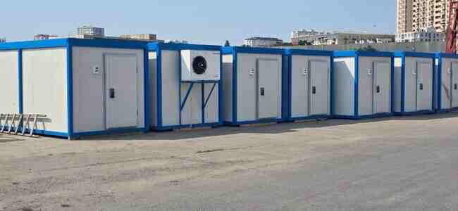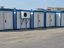 Şirkət6200 Azn Modul sanitar qovşaq və hamam konteyner binası Karkas ölçüləri (mm): W-6000 x L-2.400 x H-2.650, RAL 7016 - Dam və divar örtüyü - PUR sendviç panel, 50mm, RAL9002; - Su qızdırıcısı - 3 ədəd - Kabin - 6 ədəd - Döşəmə