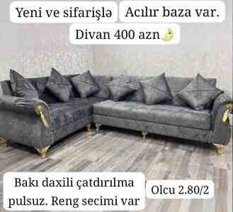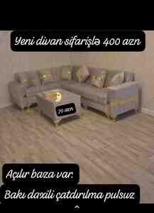 300 Azn Karkazi olmayan yumusaq divan Ölçüleri Uzunlugu 200 sm Derinliyi 100 sm Hündürlüyü 80 sm Divan açiq halda 200x200 sm olur Ünvana çatdirilma pulsuzdur İstediyiniz ölçüde ve rengde hazırlaya bilerik Hazirlanma müddeti