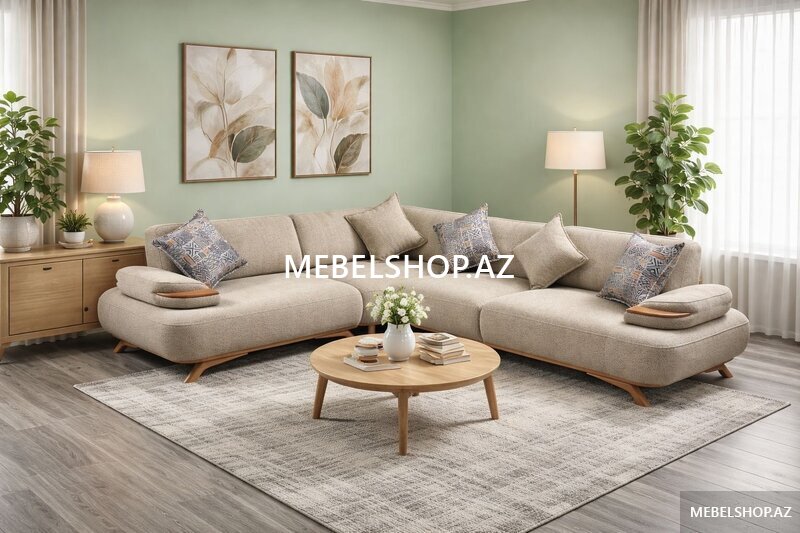 Şirkət799 Azn Krem açılan bazalı uqlavoy künc divani