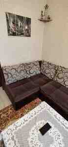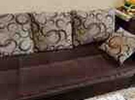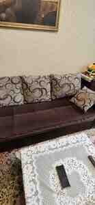 Satılır 2-ci əl divan dəsti. Divan açılıb yataq olur (mexanizm işləkdir). 2 ədəd kreslo 5 ədəd yastıq daxildir Qolları keyfiyyətli ağac + dəri işləmə Oturacaq hissə yumşaq parça material Təmiz və səliqəli istifadə
