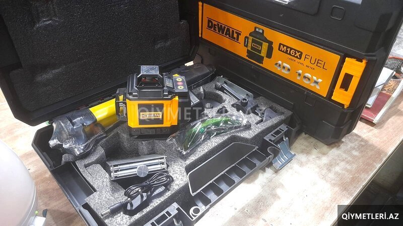 Dewalt firmasının yaşıl işıqlı lazer urovenidir. Yüzlük ölçən aparatdıır.Model 16 xəttli, 4d-dir. Hər tərəfə vurur. Həm polda , həm tavanda istifadə etmək olur. Pola da, tavana da sıfır verir. Üzərində led ekranı var. Burada öz batareyasının həcmini göstərir. Sensordur. Üzərində pultu var. Uzaq məsafədən də idarə etmək olur. Komplektində panel ayağı, 3 ayağı, böyük ayağı, 2 ədəd litium ion daşı, adapteri, eynəyi var. Bir sözlə istifadəsi komplektində hər bir detalı var. 16 m məsafədə 32 diametrdə istifadə etmək olar. Düzlüyü 16 m- də 0, 2 mm-dir. Yeni, keyfiyyətli və zavod istehsalıdır. Başqa çeşidlər də var: ucuz və bahalı. Rayonlara və şəhər daxili çatdırılma xidməti də var . Sifarişləriniz üçün əlaqə saxlayın.