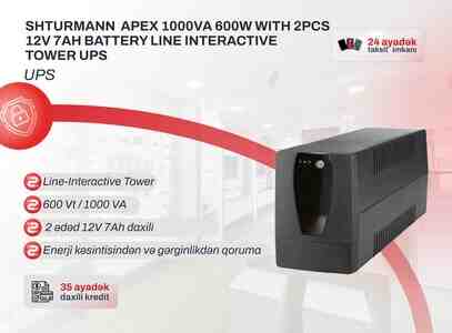 67 Azn Line Interactive UPS 600VA 360W SHTURMANN APEX 600VA 360W – Line Interactive UPS UPS / Elektrik Təchizatı Özəllikləri: Model: SHTURMANN APEX 600VA / 360W Tip: Line Interactive UPS Çıxış Gücü: 360W Güc Kapasitesi: