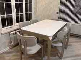 Dəstin tərkibi: 1 ədəd masa + 6 ədəd kreslo tipli stul.
