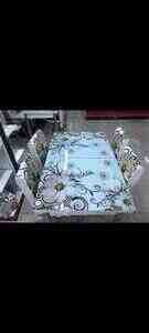 MEMBRAN MASA VƏ 4 STUL – MÖHTƏŞƏM ENDİRİM! Masa: • Üst hissə: Membran material – davamlı və ləkə tutmayan • Ayaqları: Dəmir konstruksiya – möhkəm və uzunömürlü • Ölçü: 85×85 sm, hündürlük 76 sm • Qırılma və sınma riski