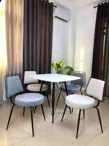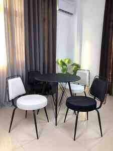 150.8 Azn ENDİRİMLİ BAR DƏSTİ – 1 MASA + 2 STUL Masa: Material: Membran – ləkə tutmayan, asan təmizlənən Ayaqları: Möhkəm dəmir Ölçü: 70 sm – həm funksional, həm də estetik Stullar: Material: Fiber – qırılmaz, ağırlığa davamlı,