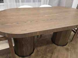 Komplekt ve ayri ayriliqda satilir, 2 aydir alinib, seliqeli ve temizdi, qirigi yoxdur, bir iki yerde stolun qiraq tereflerinde qopan balaca hisseler var, olculeri 2x1 m