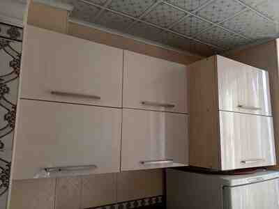 Salam.Mətbəx mebelinin üst şkafları 10ədəd 3ü yana açılan 7si amartizator ilə hər biri problemsiz işlək vəziyyətdədi.