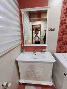 350 AznTexniki • Material: Nəmişliyə davamlı MDF / keramika lavabo • Rəng: Ağ və ya dekorativ dizayn variantları • Komplektasiya: Lavabo, alt şkaf, üst güzgülü şkaf • Ölçülər: Modeldən asılı olaraq dəyişir (məs. 60 sm, 80 sm,