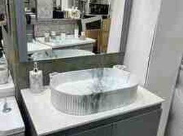 Üstü mermerdir,çanaq keramikadır.Qiymətə güzgü daxildir.