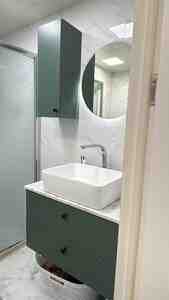 150 AznKeramoqranitli Moydadır — Müasir Dizayn Keramoqranitdən haızrlanmış moydadırlar Məhsul: Keramoqranit üzlü hamam moydadırı (daş üstü lavabo ilə birlikdə) Material: Keyfiyyətli keramoqranit və nəmdən qoruyan MDF