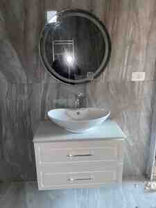 160 AznMoydadır güzgülü 80 sm, illərlə rahat istifadə üçün fiber-plast dizayn, nəmə davamlı şişməyən material. Kran və çaşkadan kanalizasiyaya gedən aksessuarlar hamısı hədiyyə. Güzgüdə 3 rəng dəyişən işiq tonu və tərləmə