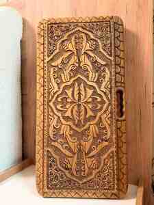 - Üst və alt qapaqda dərin əl oyma naxışlar, klassik şərq ornamentləri