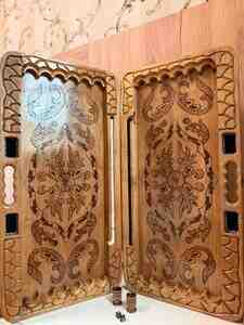 - İç hissə: simmetrik naxışlı oyun sahəsi, daşlar və zərlərin yerləşdirilməsi üçün xüsusi oyma yuvalar