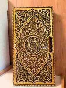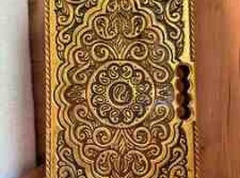 54 Azn Material: möhkəm təbii ağac - Üst və alt qapaqda dərin əl oyma naxışlar, klassik şərq ornamentləri - İç hissə: simmetrik naxışlı oyun sahəsi - Qapaq qatlanır, daşımağa uyğun - Kənarlarında dekorativ bordür oyma