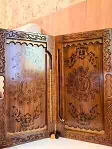 - Üst və alt qapaqda dərin əl oyma naxışlar, klassik şərq ornamentləri