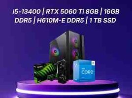 600 Azn Yeni Rəsmi Zəmanət Taksit Çatdırılma Köçürmə YENİ! Ryzen 5 7500F + RTX 5060 – Gaming PC Texniki Xüsusiyyətlər: Anakart: ASUS Prime A620M-K (AM5, DDR5) Prosessor: AMD Ryzen 5 7500F Soyutma: DeepCool AG400 LED Operativ