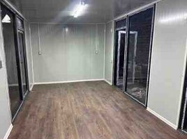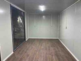 6m uzunu 2.40m eni ofis konteyneri Divarlar daş yunu ilə izolyasiya üzərindən OSB panel, tavan daş yunu ilə izolyasiya üzərindən lambirin, döşəmə linenum, elektrik işləri tam təhcizat, 2 ədəd PVC pəncərə, 1 ədəd dəmir