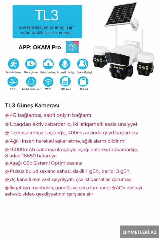 25 Azn -CATDIRILMA PULSUZ -QURAŞDIRILMA PULSUZ -YADDAŞ KARTI HEDİYYE -Original MultiVision Firmasindan 12MP/4K -yüksək keyfiyyətli 4G Sim katli SOLAR kamera -Original Sandisk 64GB yaddaş karti hediyye -195 azn den başlayan