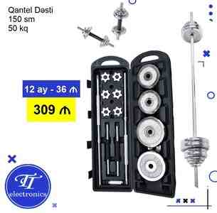 Qantel dəsti (50 kq, 150 sm) – daha ağır məşqlər və güc artırmaq istəyənlər üçün ideal seçimdir. Bu dəst ilə həm qantel, həm də ştanq kimi istifadə edərək tam bədən məşqlərini yerinə yetirə bilərsiniz.