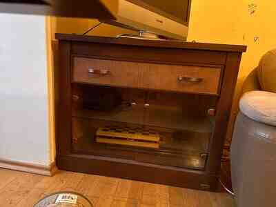 - TV stendi: yuxarıda televizor üçün səth, bir üst çekmece və önü şüşə qapılı alt bölmə (AV avadanlıq, konsol və s. üçün uyğundur), arxa hissədə kabellər üçün çıxışlar.