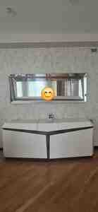 180 Azn Otaq istifadə olmadığına görə mebel az istifadə olunub Ölçüləri aşağıdakı kimidir: Uzunluğu - 370 sm Eni - 85 sm Hündürlüyü - 265 sm Taxt bazalıdır, ölçüsü 200x160 sm Trendyoldan 120 AZN-e alınmış ütü masasını mebelin