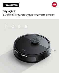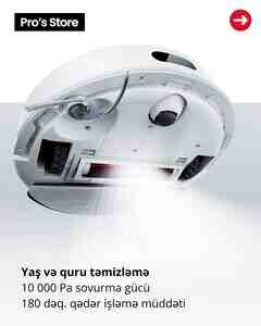 999 Azn Resmi Dukan Brend Roborock Sovurma gucu 22000 Pa Enerji yigma muddeti 2.5 saat Temzileme sahesi 215 m2 Temizleme novu Quru ve Nem Toz qabinin hecmi 0.18, 2.7 lt Su qabinin hecmi 0.69, 4 lt Smartfon ile idareolunma