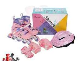 Dəbilqə və qoruyucu dəsti olan sürüşmə rulonları; O, dəbli, sadə dizaynı, əla performansı və müasir dizayn texnologiyalarını özündə birləşdirir. Roliklərin korpusu plastikdən, təkərləri isə poliuretandan hazırlanıb və normal asfaltda yuvarlanmaq üçün nəzərdə tutulub. Qırılma və vibrasiyanın qarşısını almaq üçün xüsusi ABEC 7 podşipnikləri istifadə olunur və əyləc üçün sağ baqajda daban əyləci var. Konkilər gözəl rənglərlə gəlir və mükəmməl bir hədiyyədir.