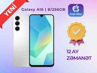 1449 Azn Yeni Samsung A16 – 8/256 GB (Qara) Tam yeni • Qutuda • Fabrik açılmamış • 1 il rəsmi zəmanət 8 GB RAM / 256 GB yaddaş Dual SIM – sürətli və stabil işləyir Keyfiyyətli kamera + güclü batareya Ekran parlaqlığı yüksək –